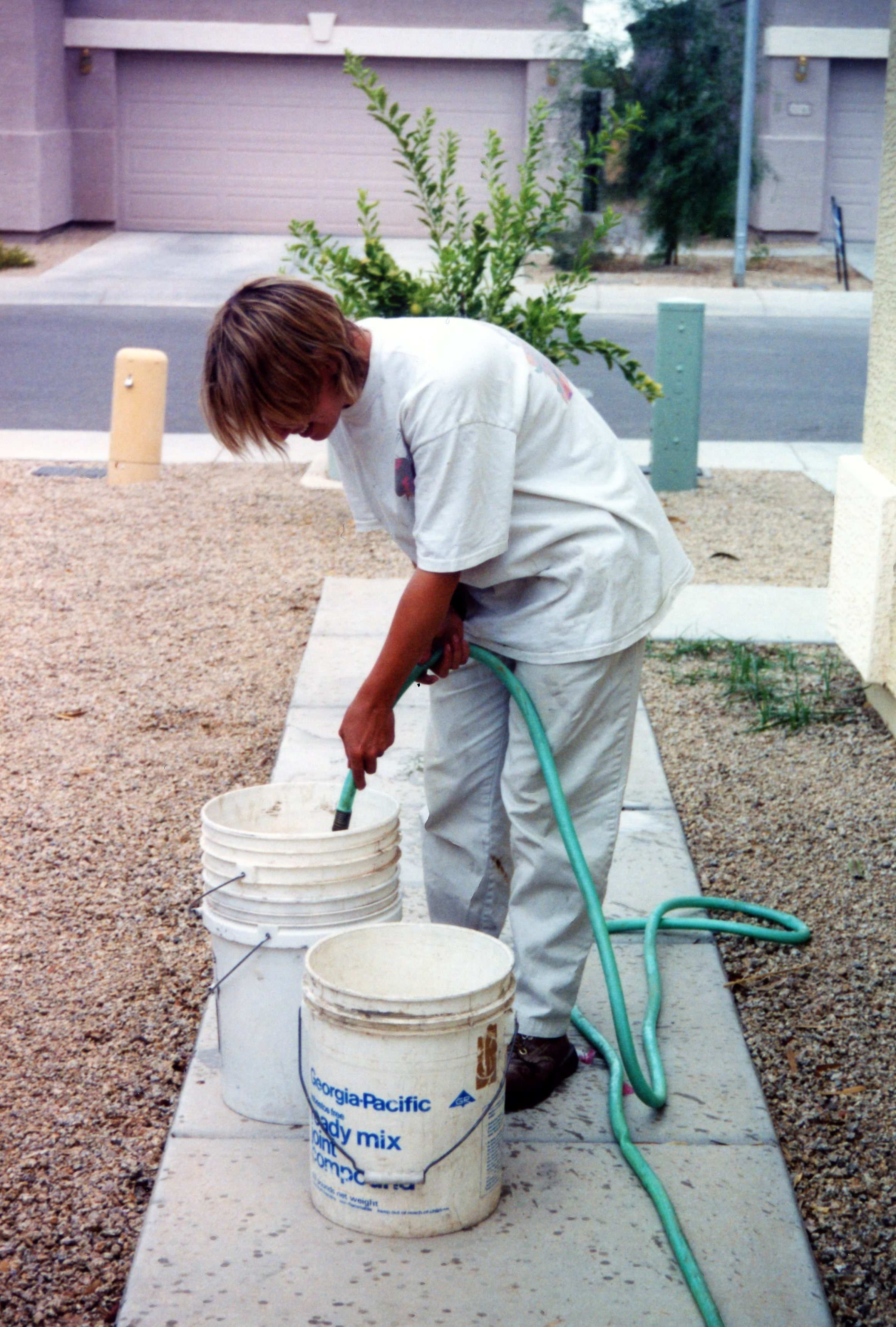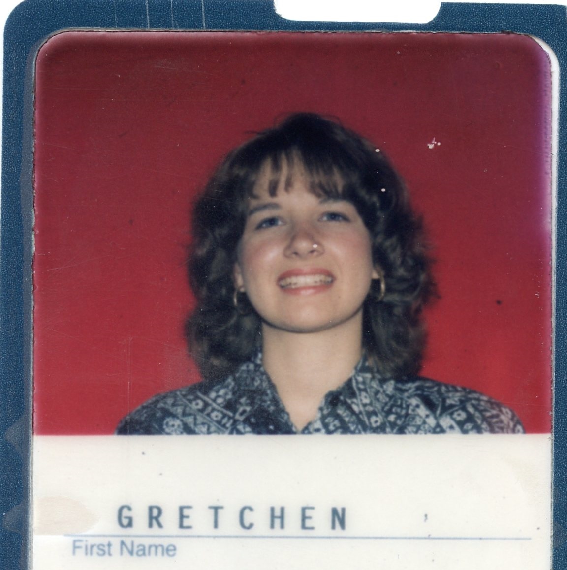 A picture of me in a hardhat from my first employer. Ignore the mom jeans and cat vest. It was 1996.