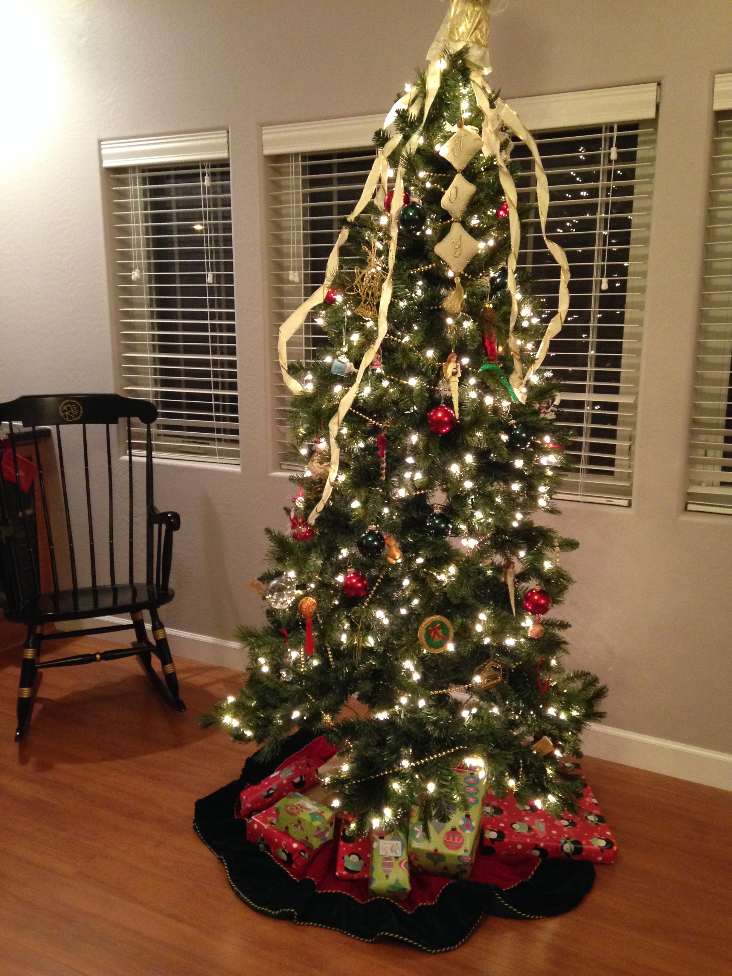 Saturday we decorated for Christmas. My husband and I usually get a live tree or don’t get a tree at all. With a kindergartener and third grader, treeless doesn’t cut it anymore. We had a pre-lit tree sitting in our garage. While I love the smell of having a live tree, I have to say there’s a lot to say for artificial. It’s only three pieces, and the lights are already threaded through. I’m a bit of a perfectionist, so by the time I’ve tackled the lights, the beads, and the ornaments, I answer to Grinchen.