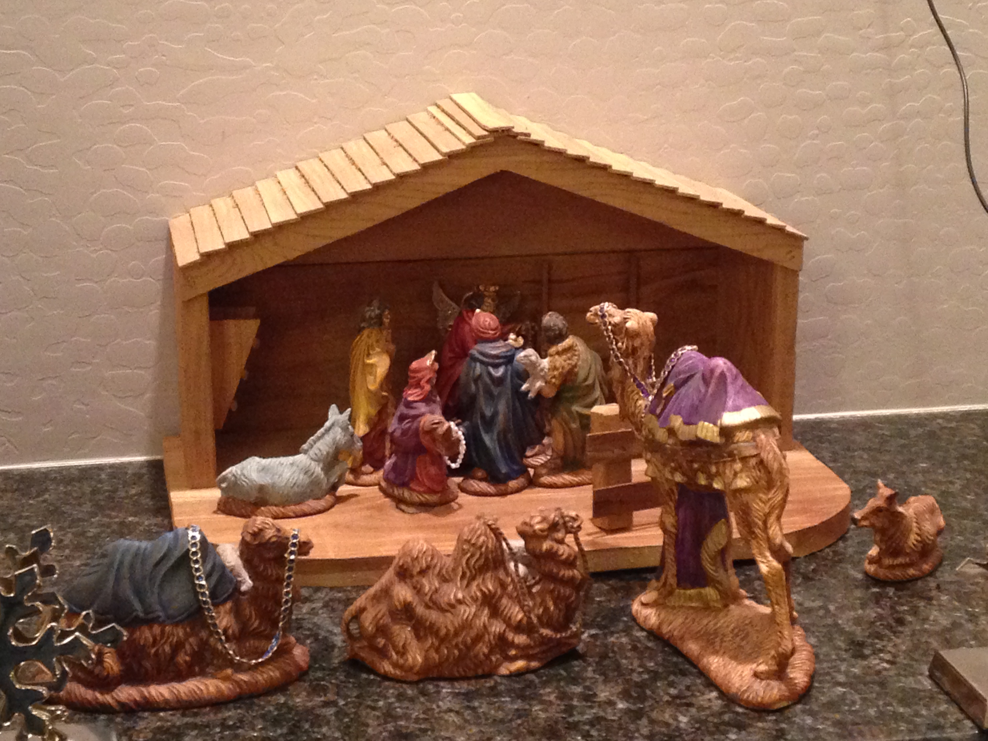 The answer was a resounding yes. Because while our home has often been treeless, I have never lived in a home without a Nativity scene. One of the first things I bought for my first apartment was a Nativity scene. And since then through several moves, every Christmas the Nativity scene goes up. My first one was from a discount store and cost $10. Now, we have two, a ceramic one made by dear family friends and given to us as a wedding gift and a plastic one that is more “Jesus Christ action set” meant to be played with. It’s fun because the sheep sometimes wander upstairs and play with Legos and Lego figures have visited the infant Savior.